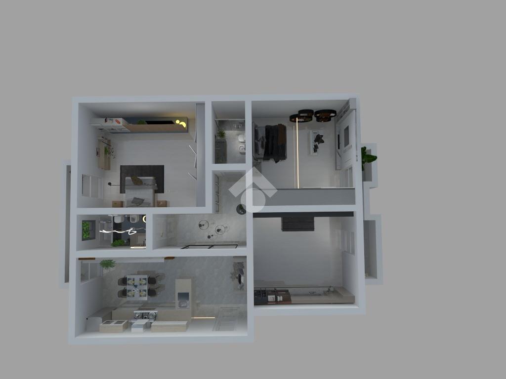 L'immobile offre una quadratura di 90 mq divisi in questo modo: ingresso in disimpegno, due camere da letto, soggiorno, ripostiglio, bagno, cucina abitabile e doppia esposizione su Via Principe di Piemonte e Via Matteotti.