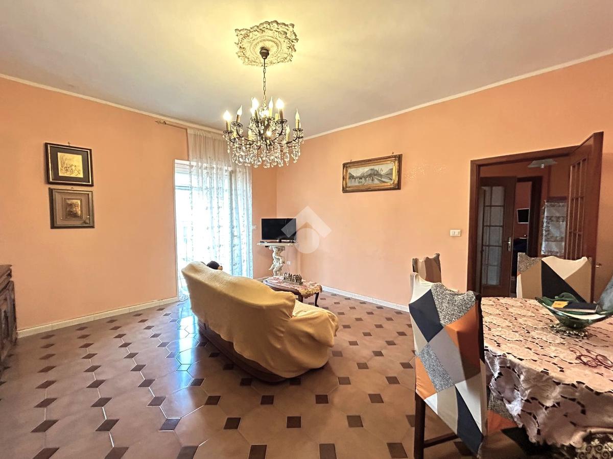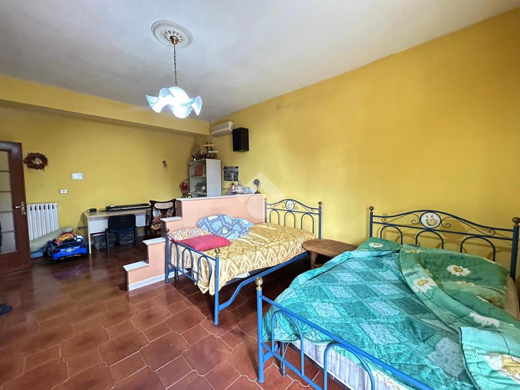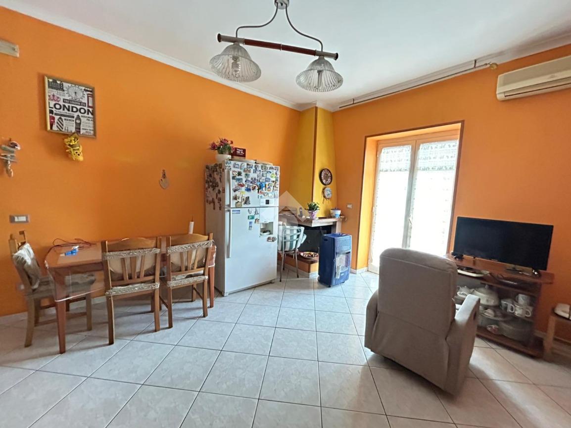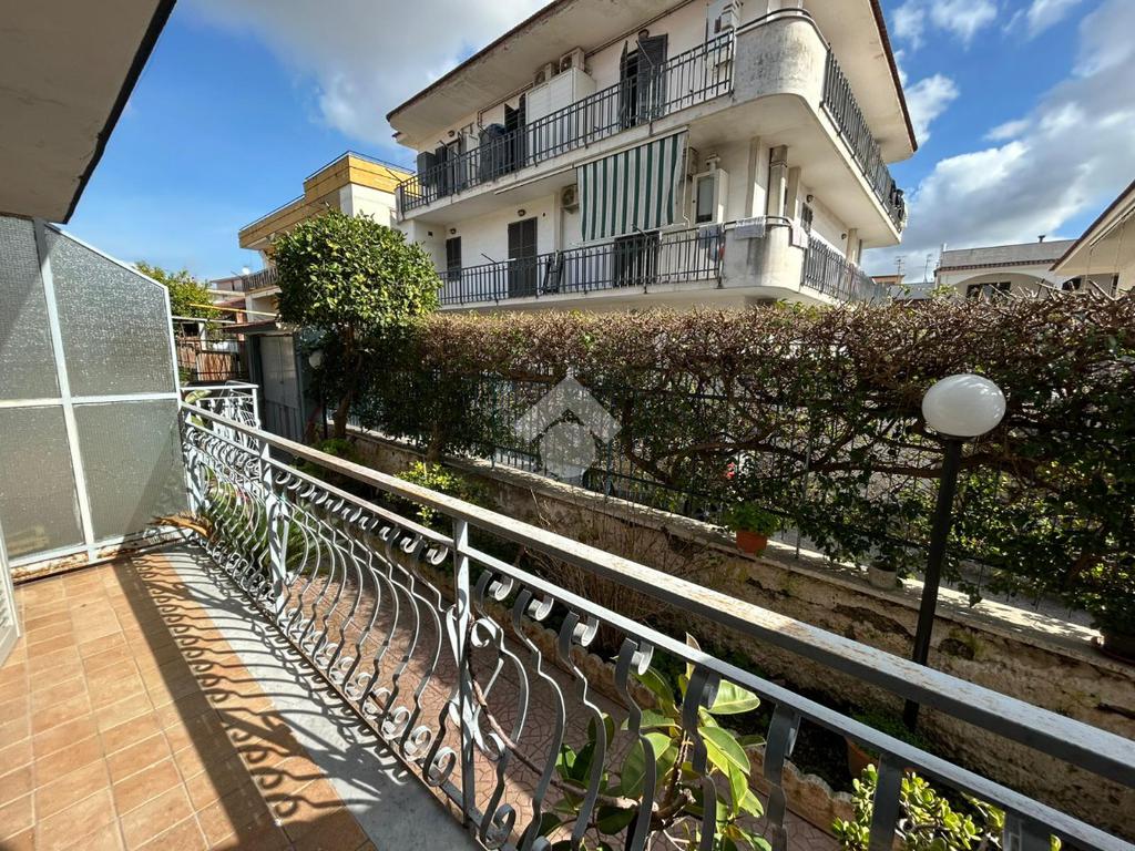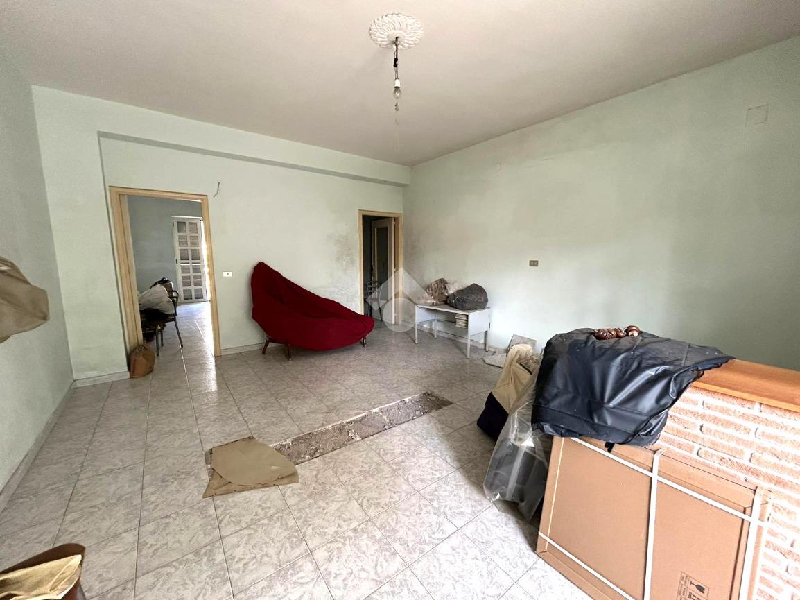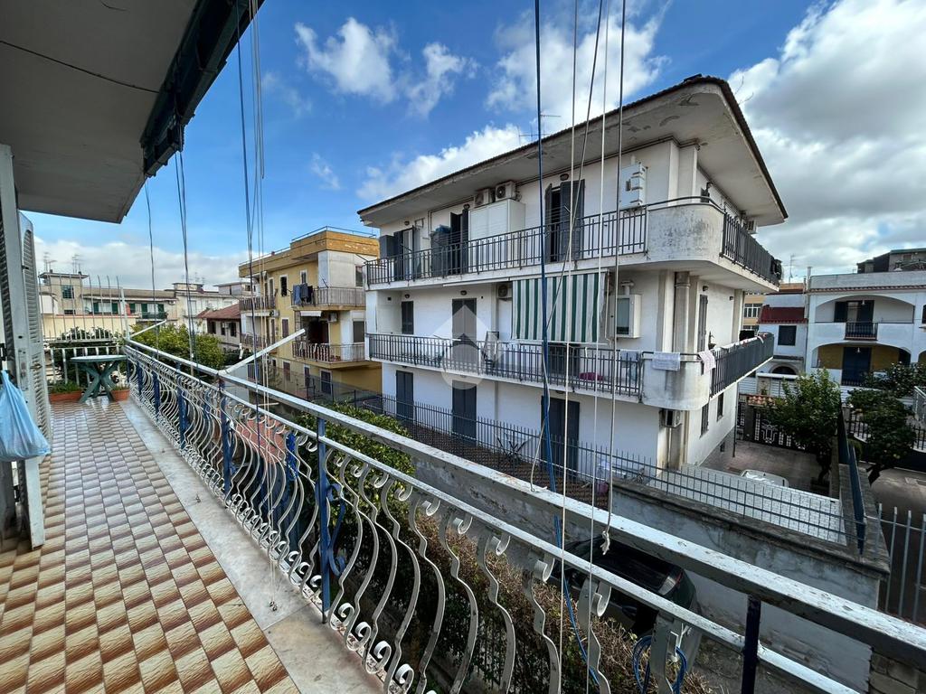 L'appartamento, posto al 1° piano offre una quadratura di 110 mq e si presenta da ristrutturare; attualmente è diviso in ingresso in soggiorno, cucina living con camino, bagno, camera matrimoniale, balcone che circonda l'intero immobile, cameretta e ampio balcone che costeggia tutto immobile