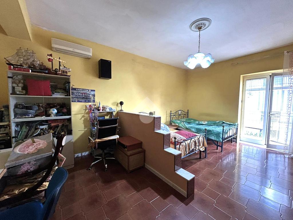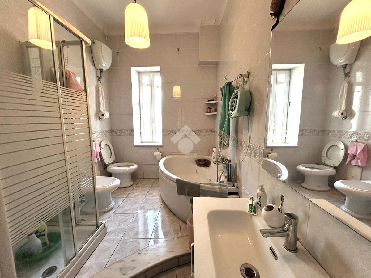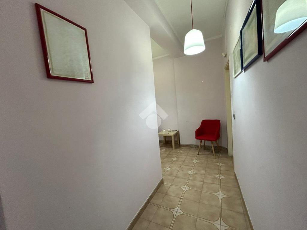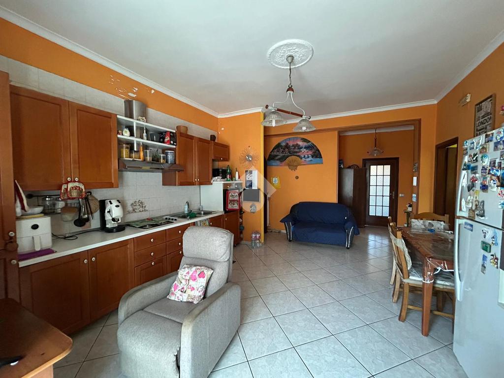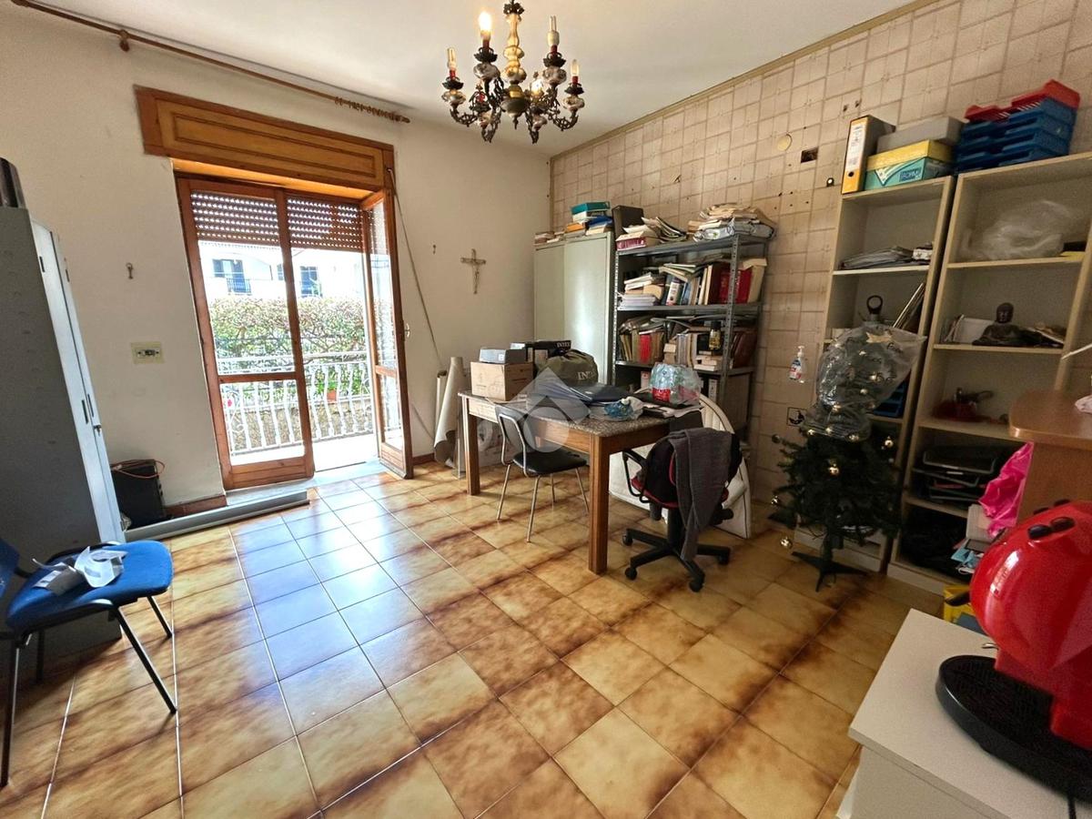 L'appartamento, posto al 1° piano offre una quadratura di 110 mq e si presenta da ristrutturare; attualmente è diviso in ingresso in soggiorno, cucina living con camino, bagno, camera matrimoniale, balcone che circonda l'intero immobile, cameretta e ampio balcone che costeggia tutto immobile